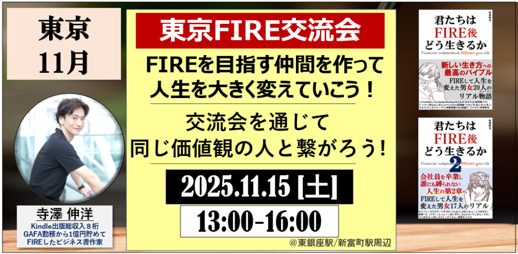 そこで僕はこの3つのうち「遊ぶ力」に力を入れ、イベントを開催してFIREした方/FIREしたい方をつなぐことにしました!